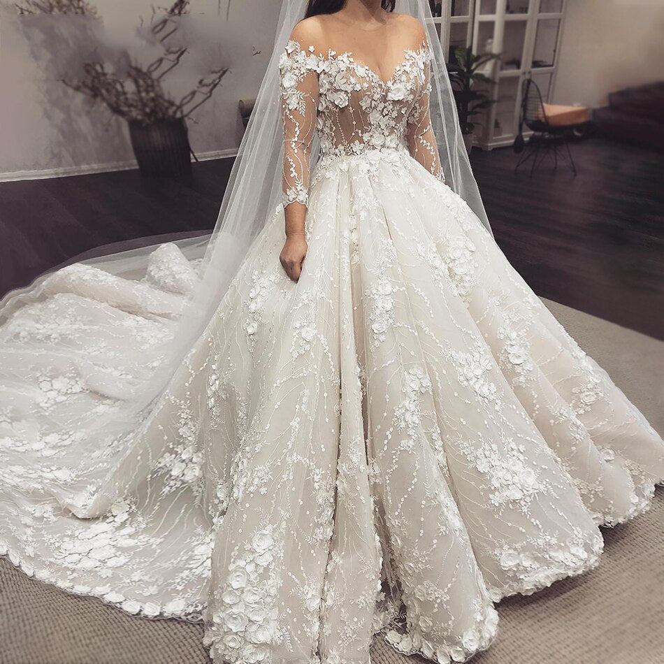 Luxury Wedding Gowns Ivory Women Sexy Sweetheart V-neck Lace Applique Long Sleeve A Series Bridal Dresses Party Robe 2023 925