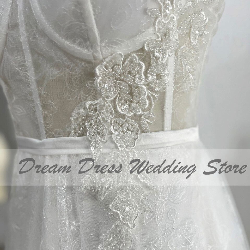 Spaghetti Straps Lace Appliques Boho Wedding Dress 2023 Corset Closure Elegant Sweetheart A-Line Bridal Gowns 925